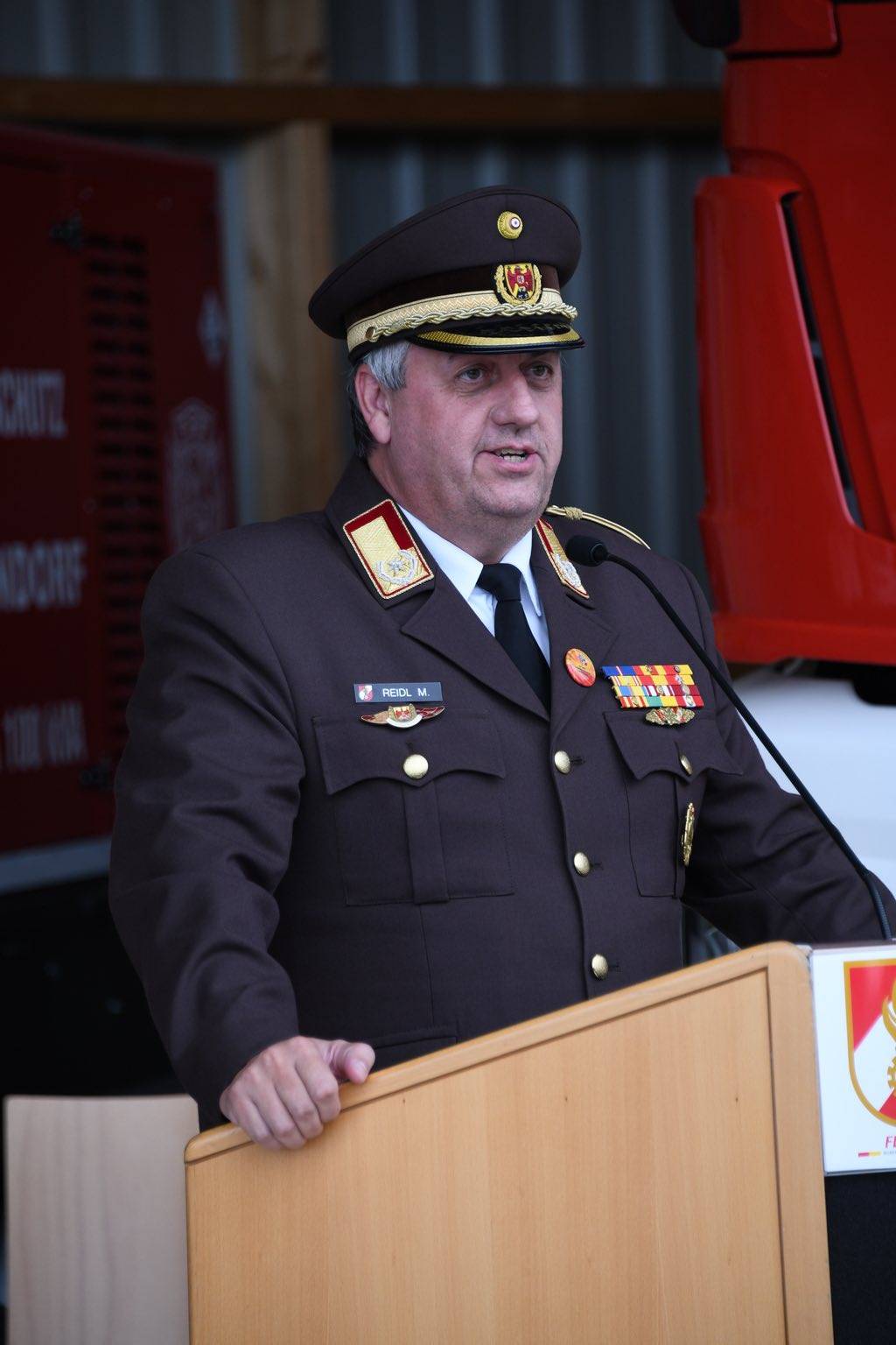 LBDS Martin Reidl gratulierte im Namen des Landesfeuerwehrkommandos und der 18.500 Feuerwehrmitglieder des Burgenlandes. Er betonte, dass Geräte wie diese Meilensteine darstellen, die aber auch regelmäßiges Üben und Warten erfordern.