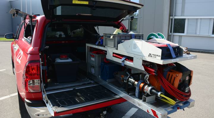 Das Versorgungsfahrzeug mit Allrad fährt bei jedem technischen Einsatz aus.