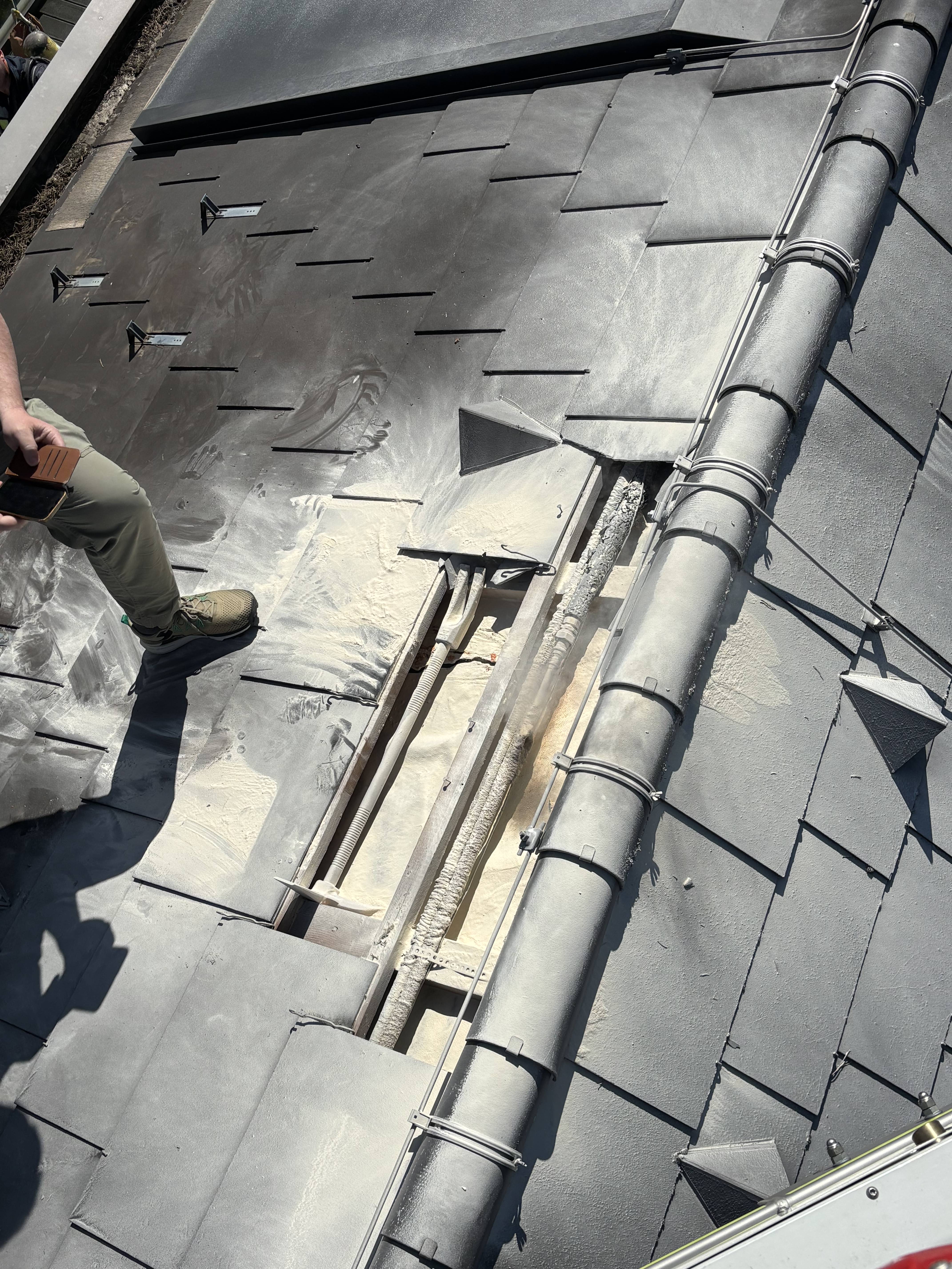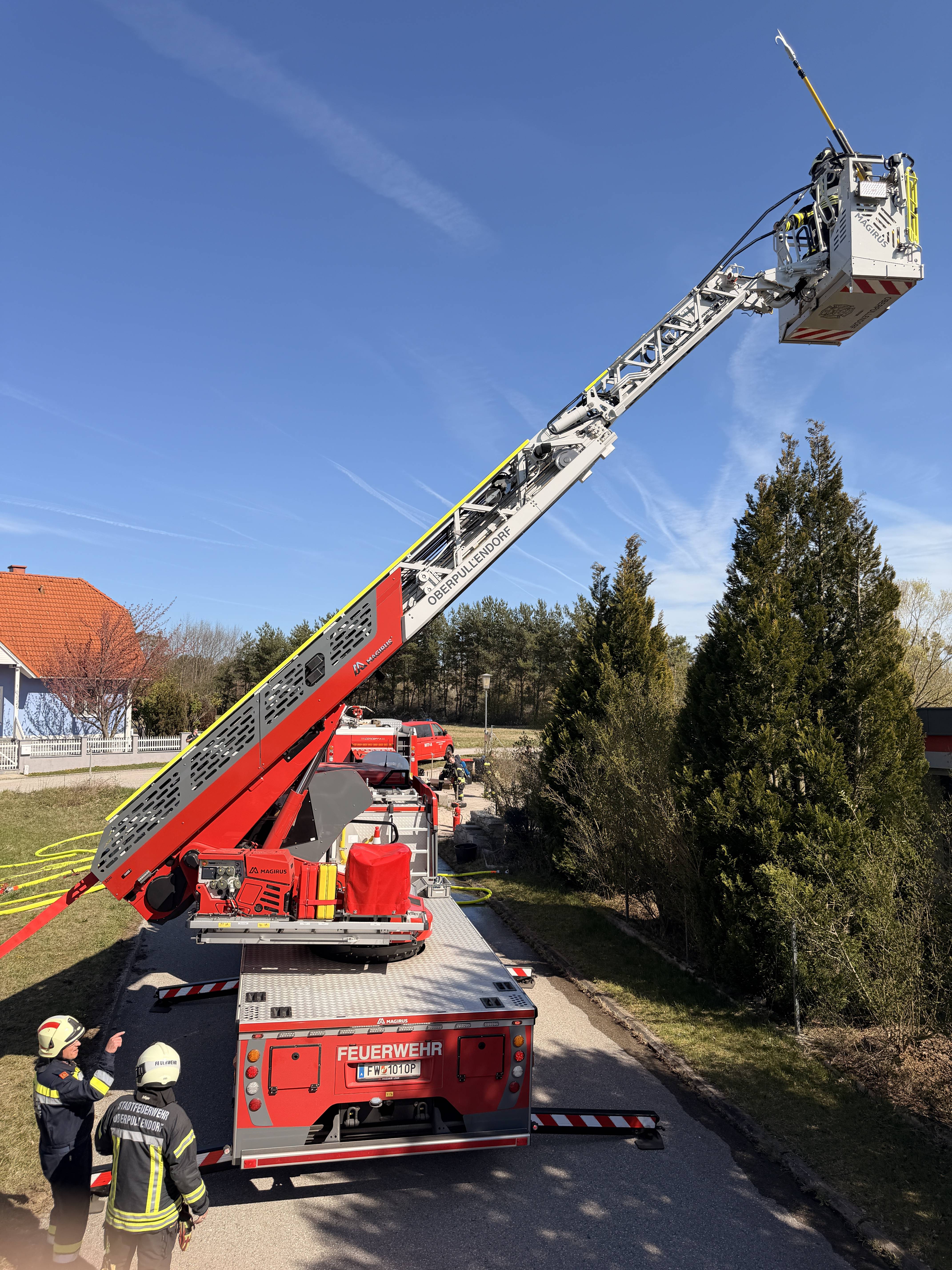Im Zuge der weiteren Erkundung stellte sich jedoch heraus, dass kein Brand vorlag. Ursache für die Rauchentwicklung war eine undichte Solaranlage, aus der Wasserdampf austrat und den Eindruck eines Dachstuhlbrandes erweckte.