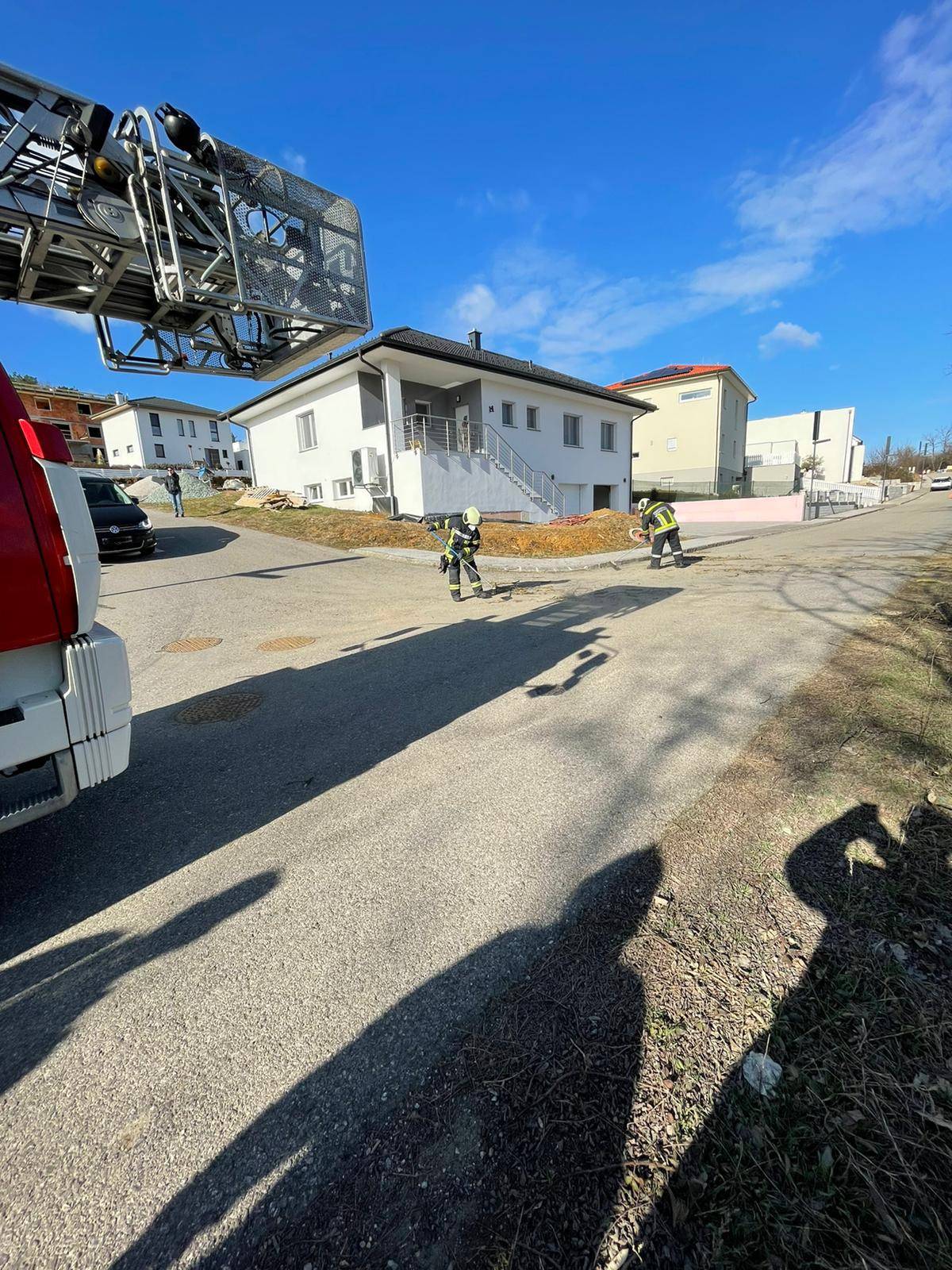 Die Feuerwehr Oberpullendorf rückte mit der Drehleiter und dem schweren Rüstfahrzeug zur Gefahrenbeseitigung aus.