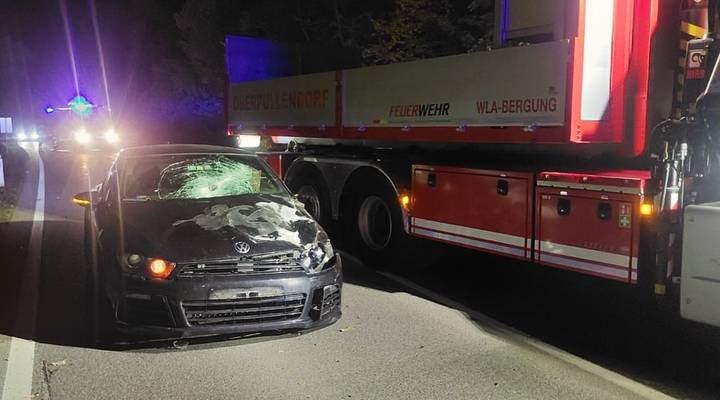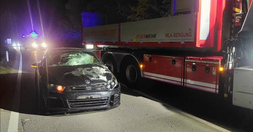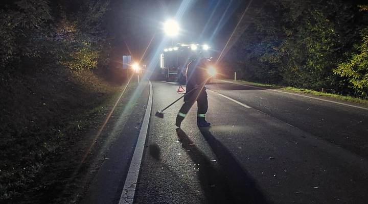 Heute früh wurden wir zu einem Verkehrsunfall auf der B50 Richtung Steinberg alarmiert. Ein PKW kollidierte mit einem Hirsch, der dabei erlegt wurde.